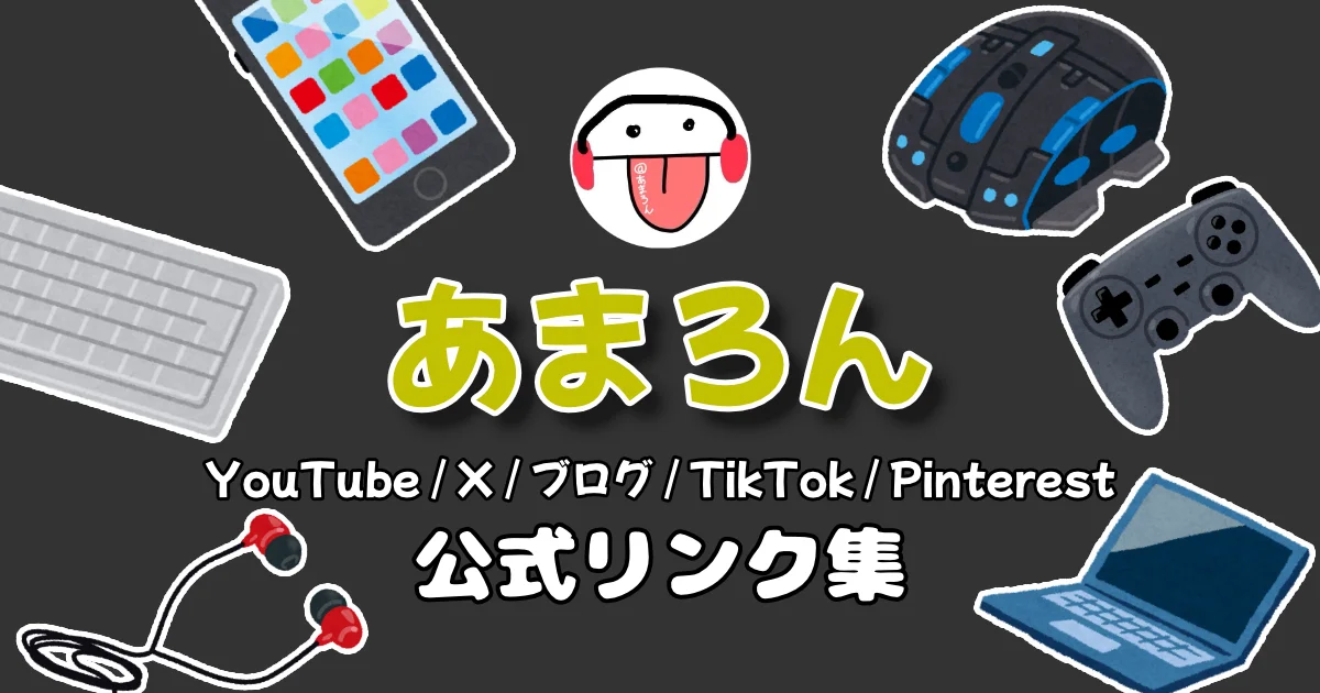 あまろん SNSリンク集 X Facebook LINE コピー 2026.03.092026.03.14 あまろん フリーランス映像制作者 / ブロガー 動画制作のノウハウや日々の気づきを発信中! YouTube (ガジェット) メインの動画発信・チュートリアル YouTube (ゲーム実況) ゲーム実況や配信はこちら X (旧Twitter) 日々の裏側・最新のお知らせ Amaron Blog 詳細なレビュー・ノウハウ記事 TikTok サクッと見られるショート動画 Pinterest デザインやアイデアのスクラップ お仕事のご依頼・お問い合わせ